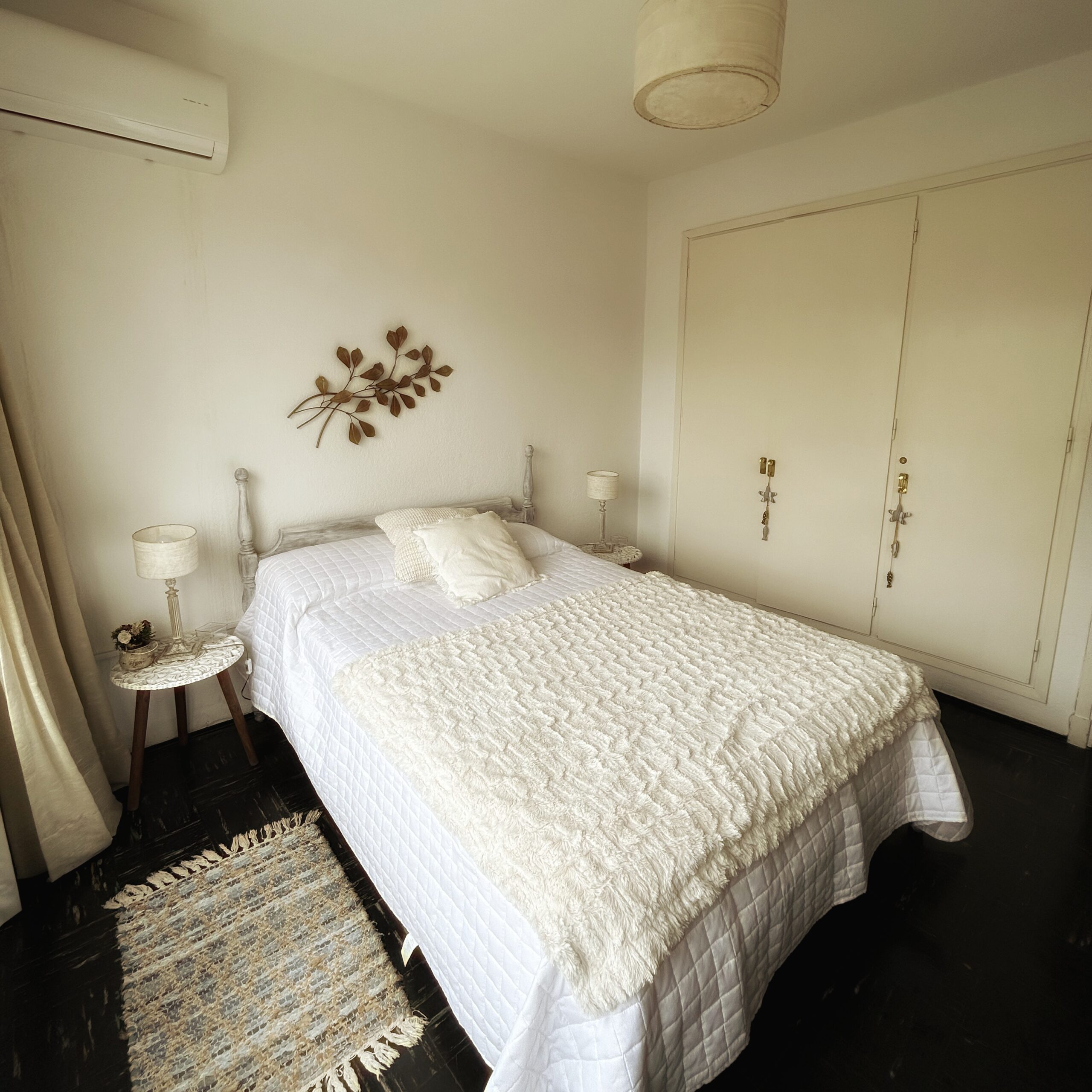 Dormitorio con aire acondicionado, TV cable, placard de gran capacidad empotrado y cama de dos plazas.