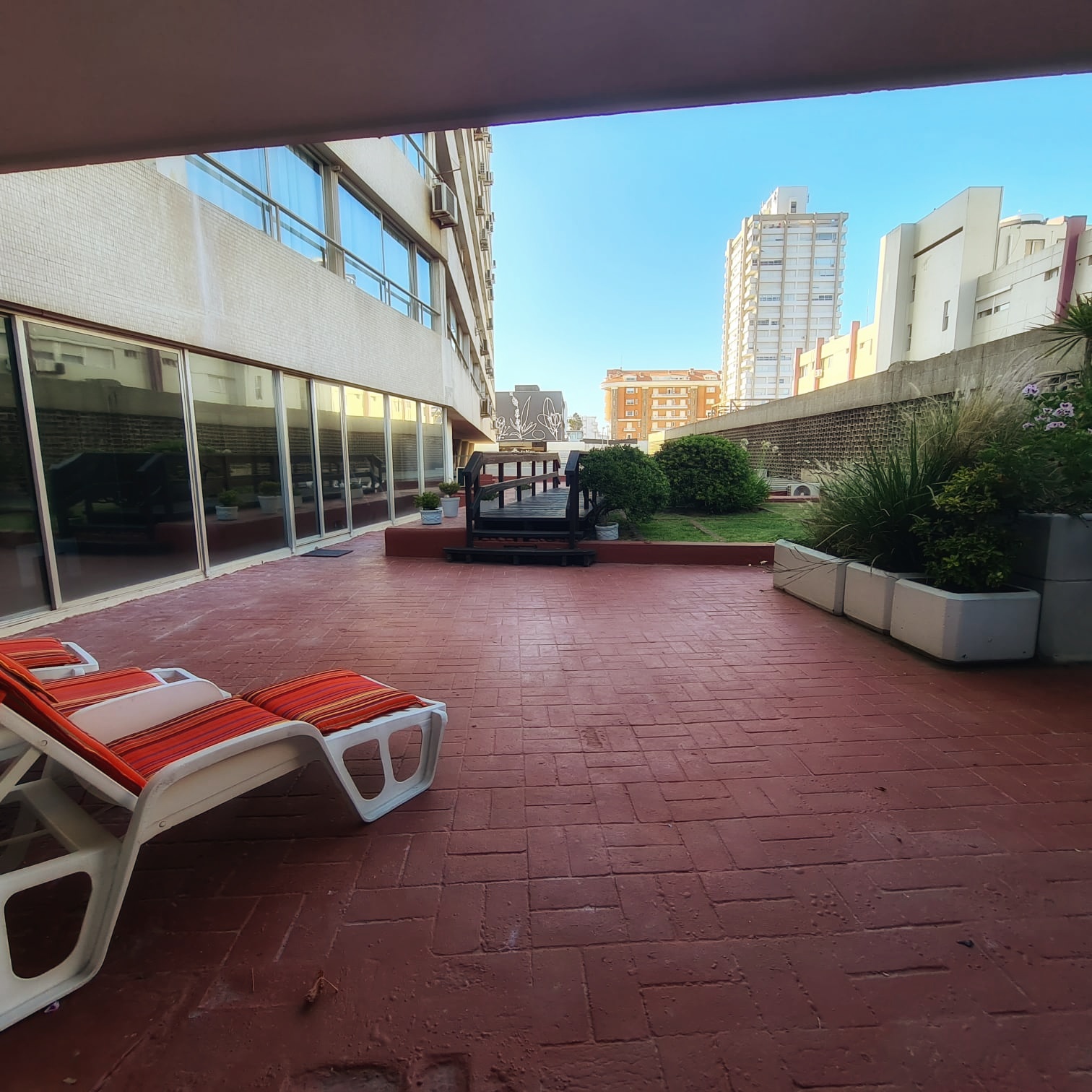 Terraza abierta con reposeras